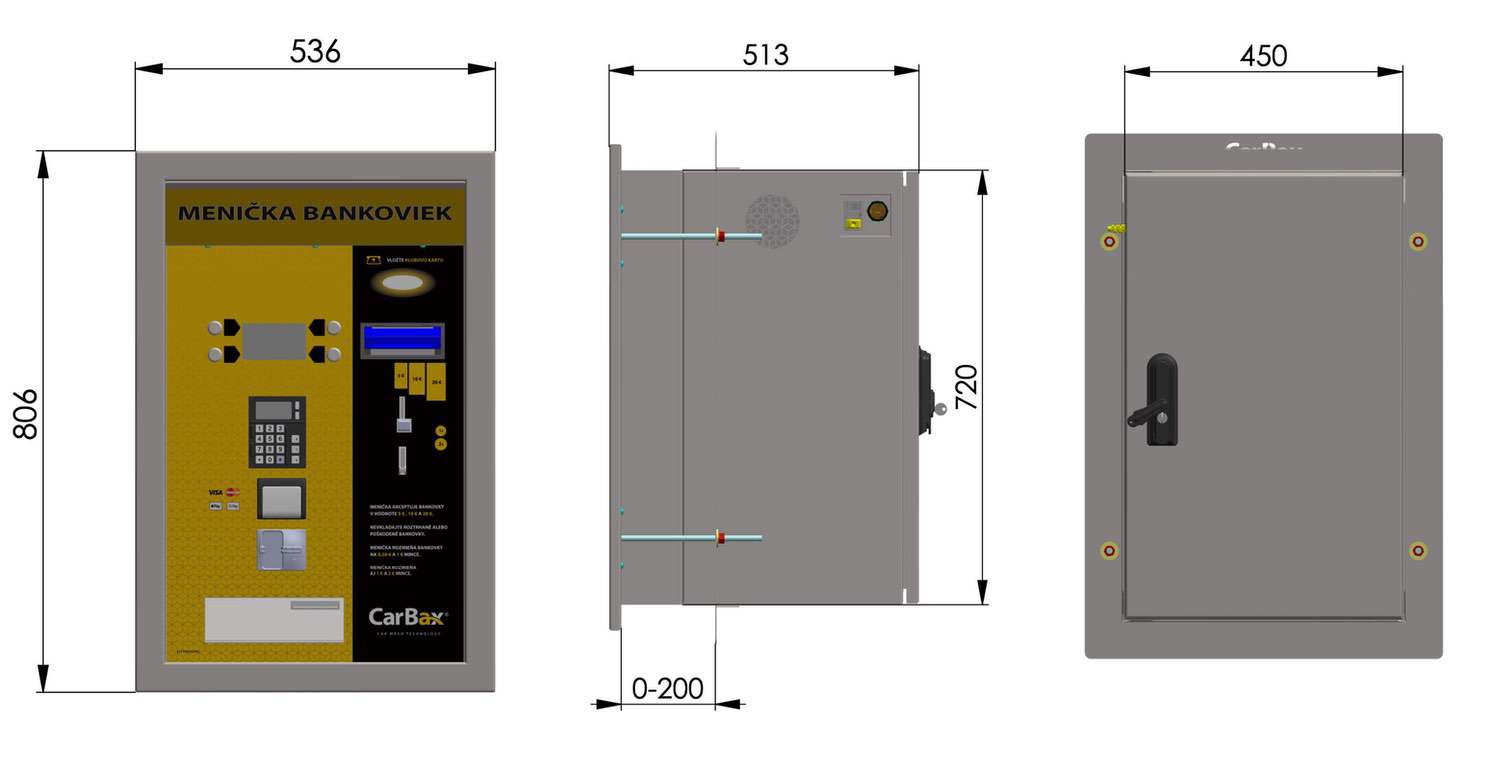 The CarBaxChange banknote changer can change up to 3 types of banknotes into two types of coins. In addition to banknotes, it can accept coins, which it also turns into lower value of coins. In addition to the classic swapping, the CarBaxChange inverter can be equipped with a system for selling and recharging loyalty cashless CarBaxCards, including a loyalty system for discounts for customers, based on the amount of charged credit.